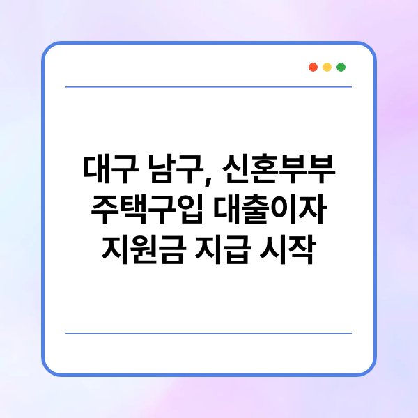 ✅ 대구 남구 신혼부부 주택구입 대출이자 지원금 지급 시작