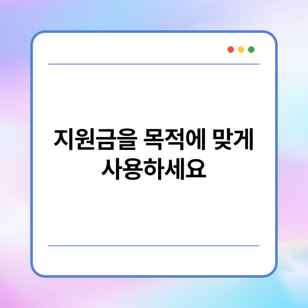A3: 지원금을 사용할 때는 해당 목적에 맞게 사용해야 하며, 사용 내역을 명확히 기록해야 합니다. 또한, 지원금 사용에 대한 규정을 준수하는 것이 중요합니다.